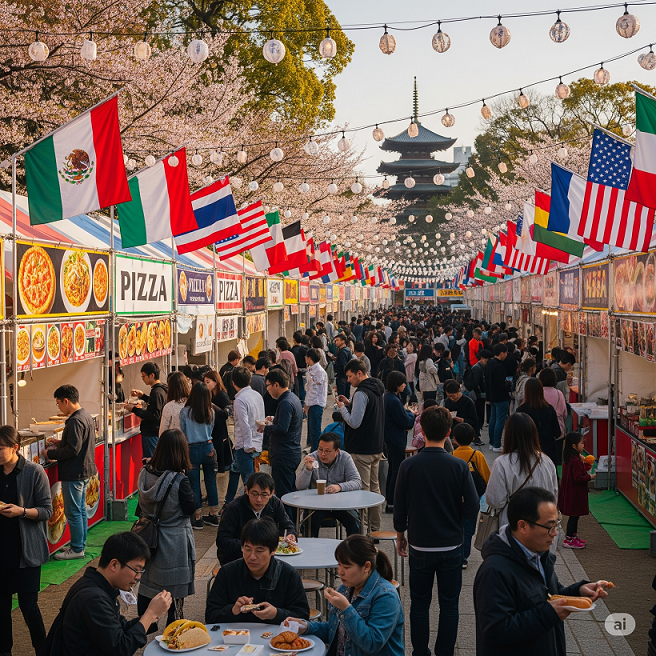 Nhằm kỷ niệm 10 năm Ngày hội diễu hành buổi sáng Katsuo Sorashita, sự kiện lần này quy tụ khoảng 30 gian hàng với món ăn đặc sắc từ hơn 20 quốc gia như mì lạnh Hàn Quốc, pizza, bánh tortilla, churros, phở Việt Nam, cùng nhiều sản phẩm độc đáo như phụ kiện thủ công và bọ cánh cứng quý hiếm. Ngoài ra, sân khấu còn khuấy động không khí bằng các tiết mục ảo thuật, trống Katsuo Kintoki và điệu nhảy truyền thống.